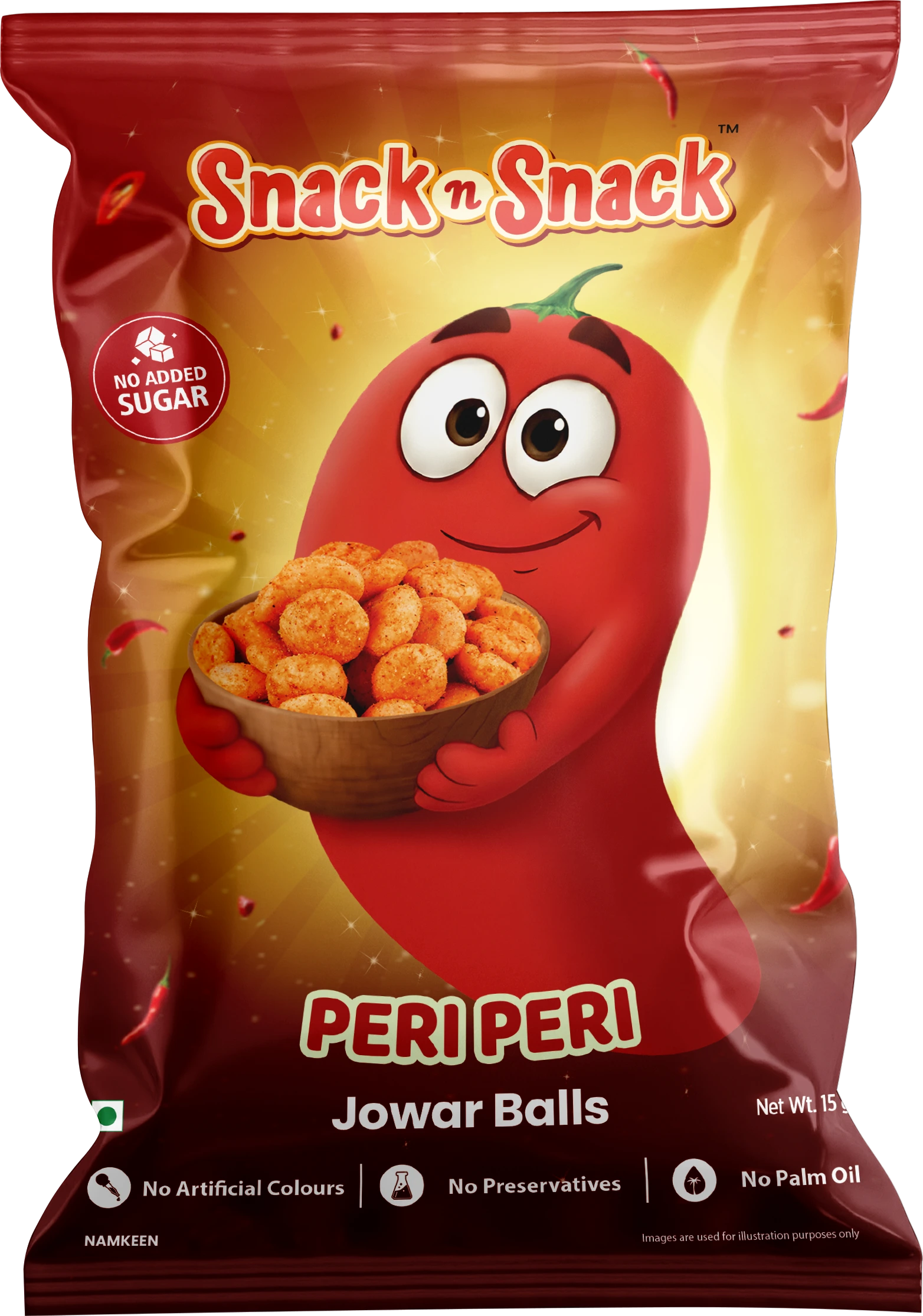 Jowar-based crunchy balls coated with peri peri seasoning. Delivers bold spice with a light, airy bite. Made for spice lovers seeking grain-based snacks.